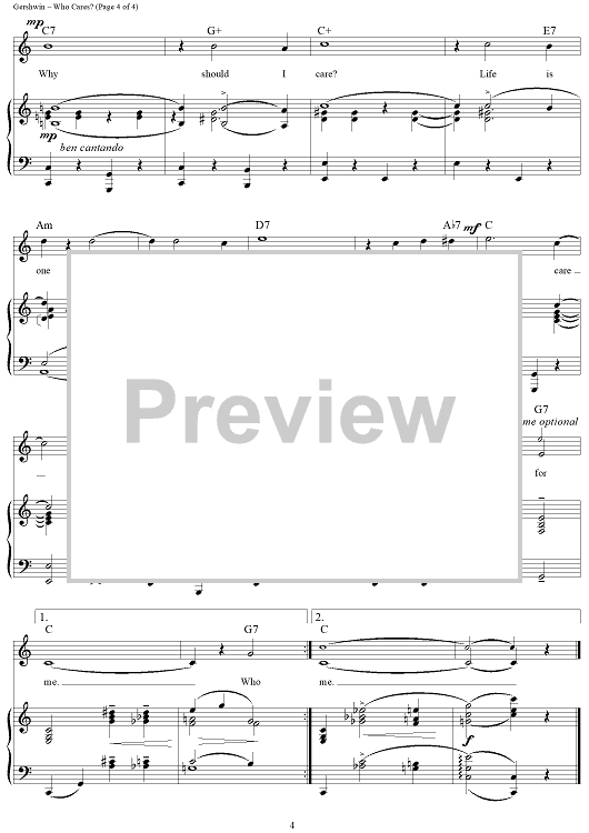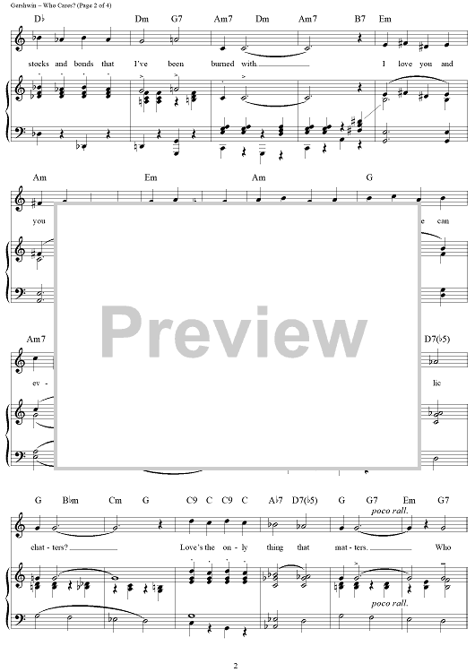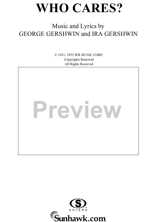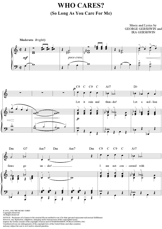 Digital Sheet Music for Who Cares? (So Long As You Care for Me) by George Gershwin, Ira Gershwin scored for Piano/Vocal/Chords; id:116302