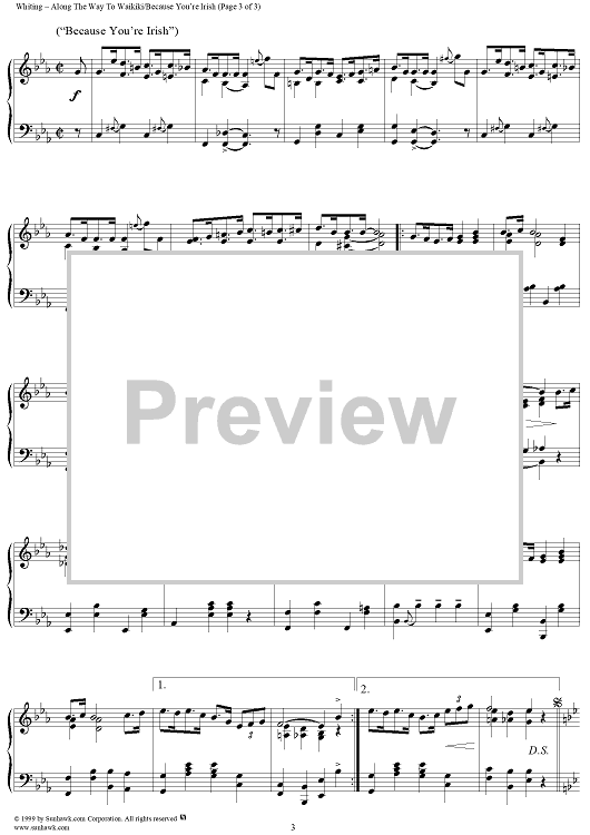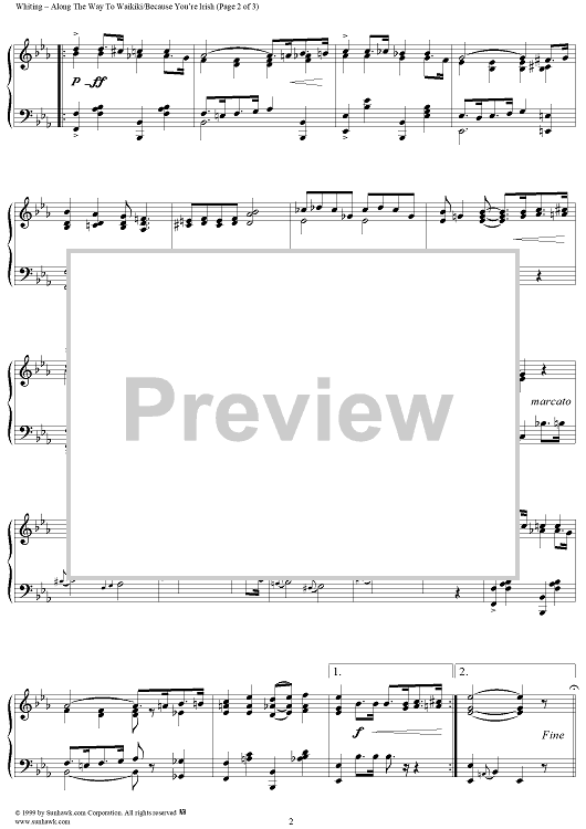 Digital Sheet Music for Along The Way To Waikiki / Because You're Irish medley (Fox Trot) by Egbert Van Alstyne, Richard A. Whiting scored for Piano Solo; id:264238