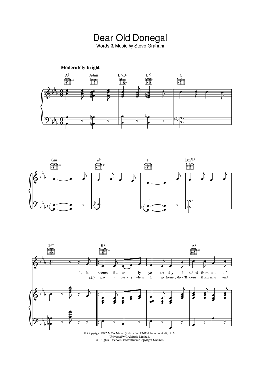 Digital Sheet Music for Dear Old Donegal by Steve Graham scored for Piano/Vocal/Chords; id:390370