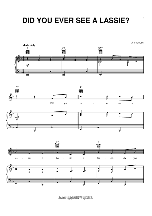 Digital Sheet Music for Did You Ever See A Lassie? by scored for Piano/Vocal/Chords; id:368464