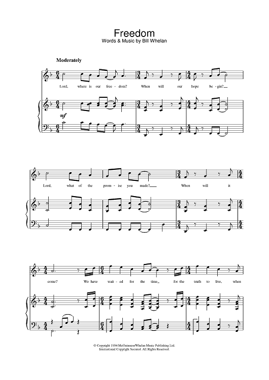 Digital Sheet Music for Freedom by Riverdance, Bill Whelan scored for Piano; id:377321