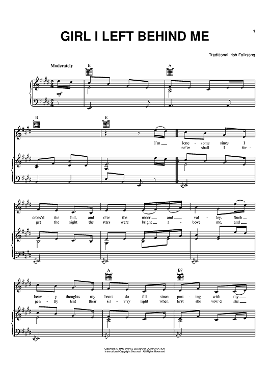 Digital Sheet Music for Girl I Left Behind Me by scored for Piano/Vocal/Chords; id:373121