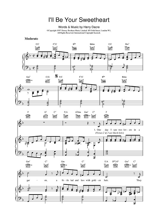 Digital Sheet Music for I'll Be Your Sweetheart by Harry Dacre, Foster & Allen scored for Piano/Vocal/Chords; id:379670