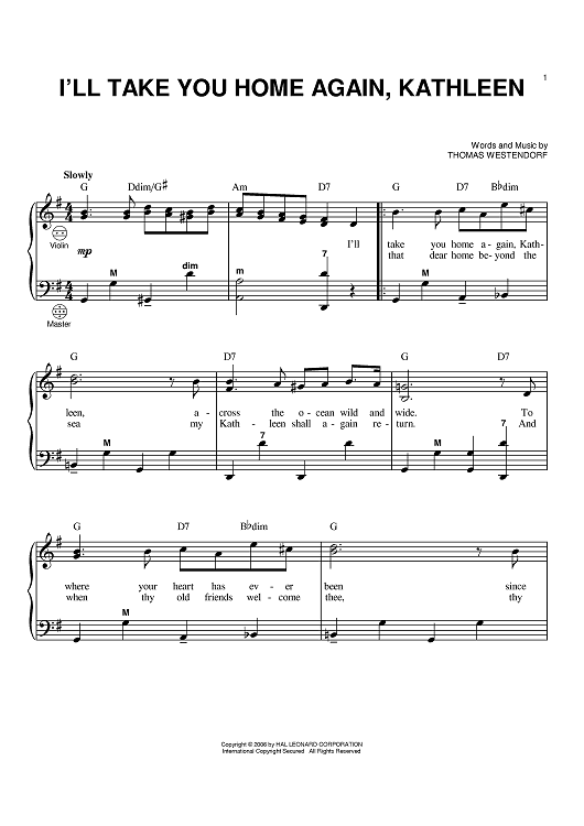 "I'll Take You Home Again, Kathleen" Sheet Music by Thomas Westendorf