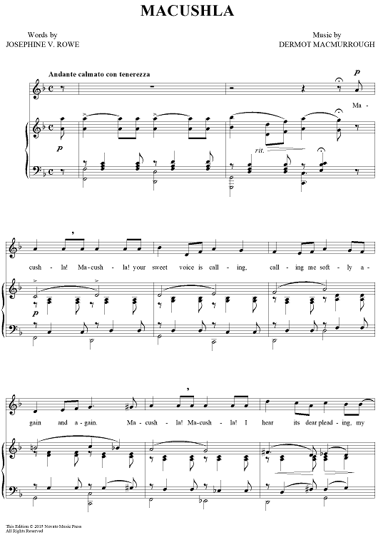 Digital Sheet Music for Macushla by Josephine V. Rowe, Dermot MacMurrough scored for Piano/Vocal/Chords; id:456395