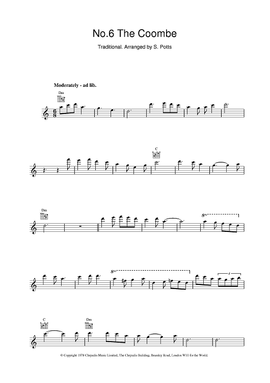 Digital Sheet Music for No.6 The Coombe by The Chieftains, S Potts scored for Lead Sheet; id:379993