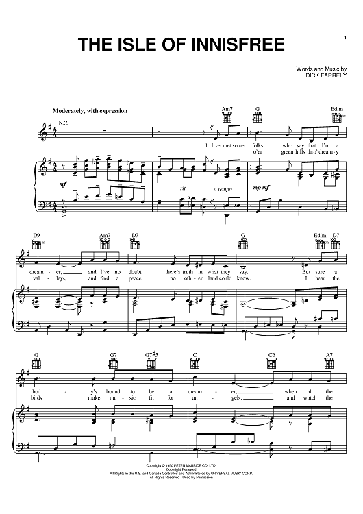 "The Isle Of Innisfree" Sheet Music by Dick Farrely