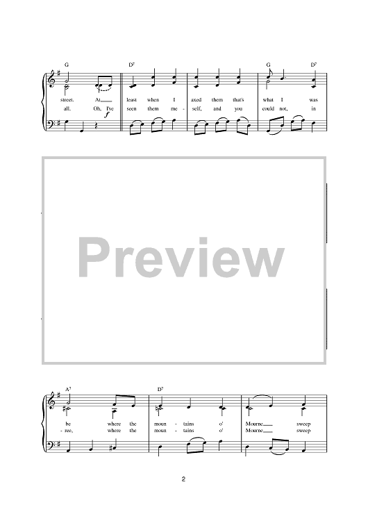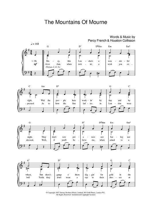Digital Sheet Music for The Mountains Of Mourne by Percy French, Houston Collisson scored for Easy Piano; id:382451