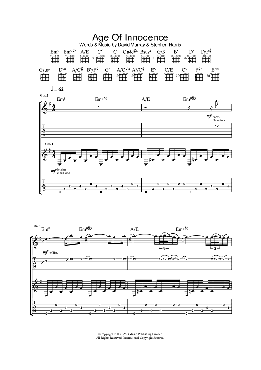 Digital Sheet Music for Age Of Innocence by Iron Maiden scored for Guitar Tab; id:378323