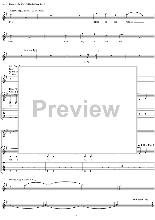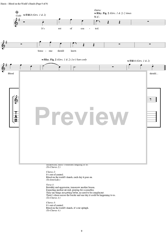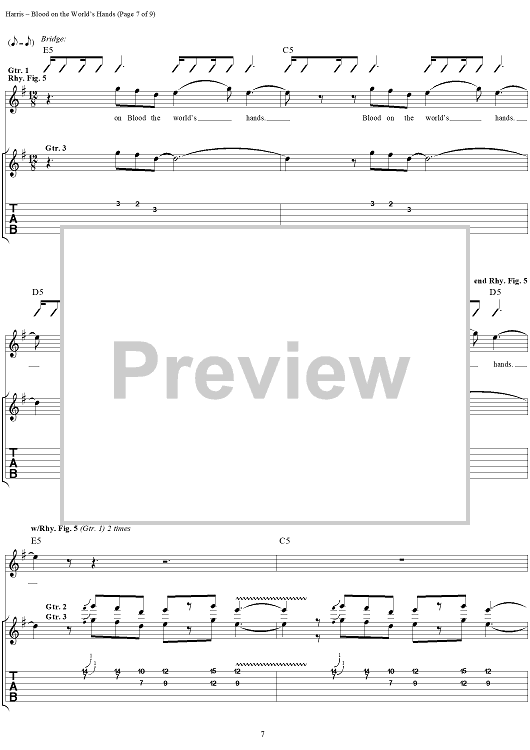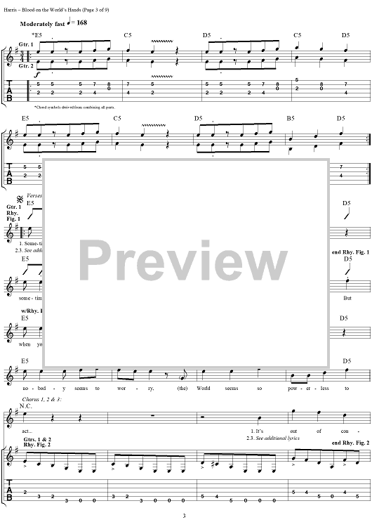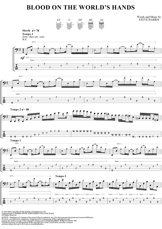 Digital Sheet Music for Blood on the World's Hands by Steve Harris, Iron Maiden scored for Guitar Tab/Vocal; id:165113