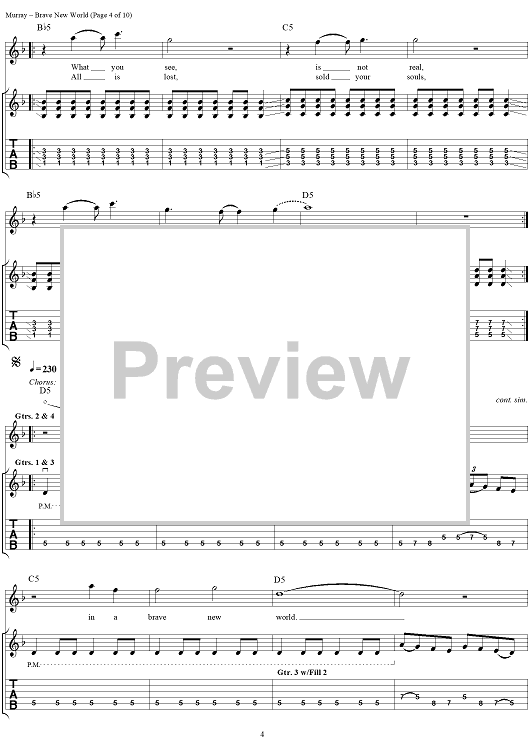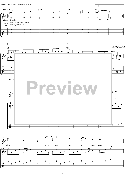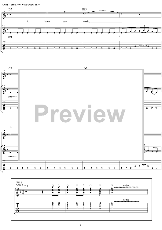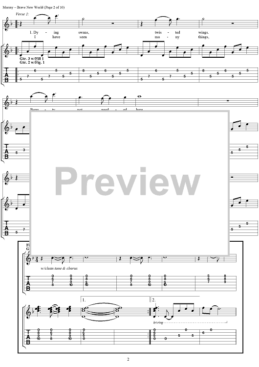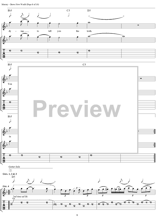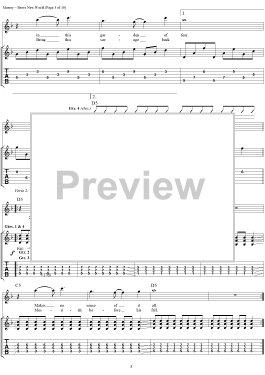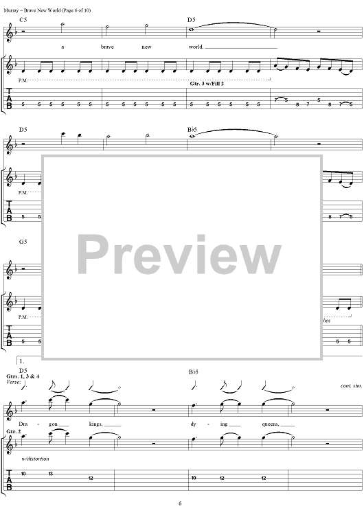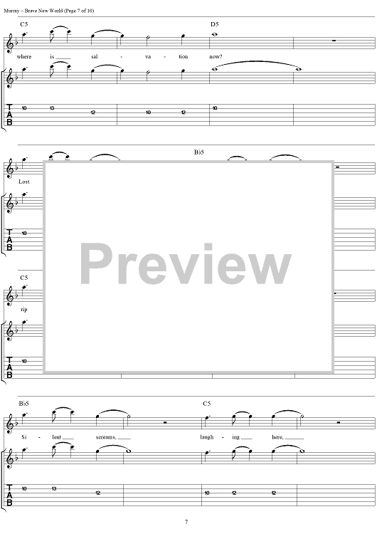 Digital Sheet Music for Brave New World by Steve Harris, Bruce Dickinson, Iron Maiden, Dave Murray scored for Guitar Tab/Vocal; id:284105