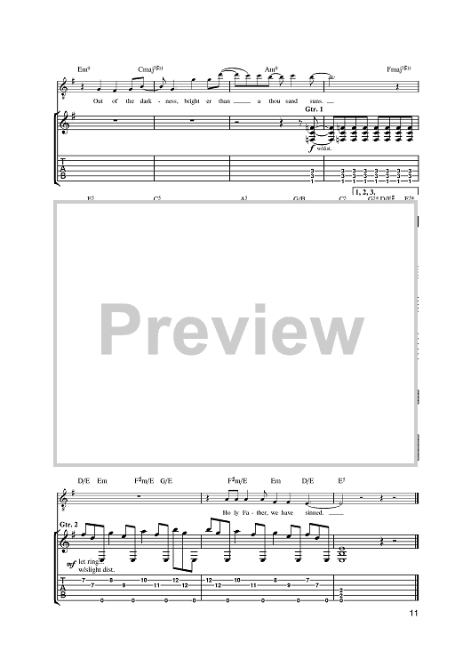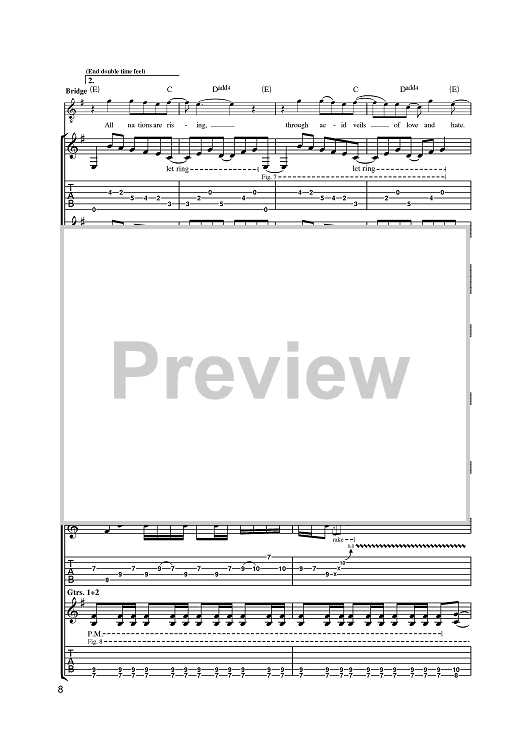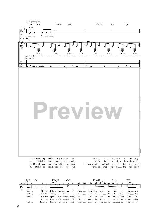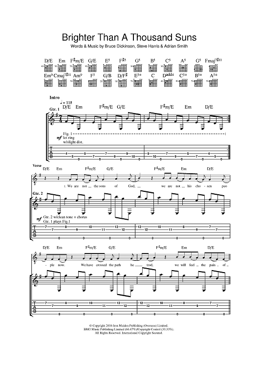 Digital Sheet Music for Brighter Than A Thousand Suns by Steve Harris, Bruce Dickinson, Adrian Smith, Iron Maiden scored for Guitar Tab; id:395574