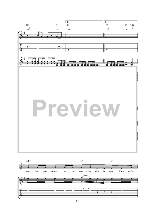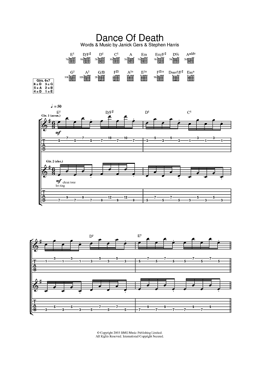 Digital Sheet Music for Dance Of Death by Iron Maiden scored for Guitar Tab; id:378318