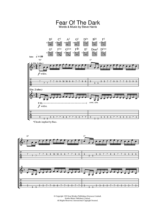 "Fear Of The Dark" Sheet Music by Iron Maiden