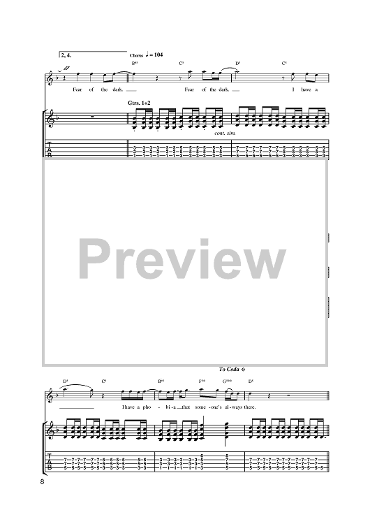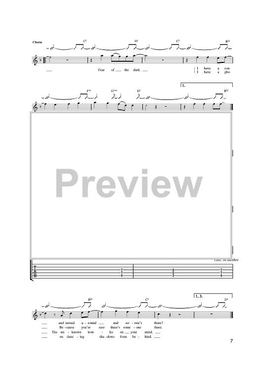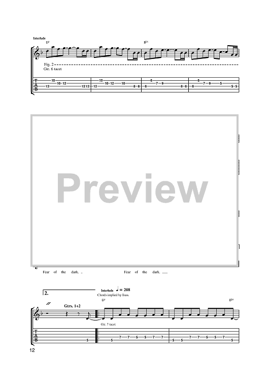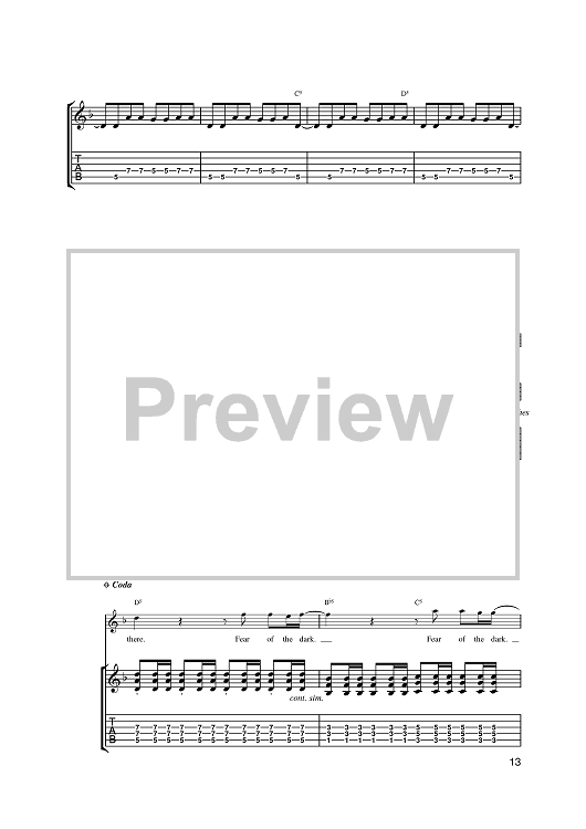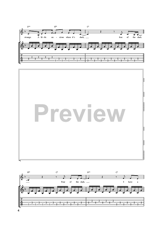 Digital Sheet Music for Fear Of The Dark by Steve Harris, Iron Maiden scored for Guitar Tab; id:389181