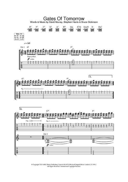 Digital Sheet Music for Gates Of Tomorrow by Iron Maiden scored for Guitar Tab; id:378319