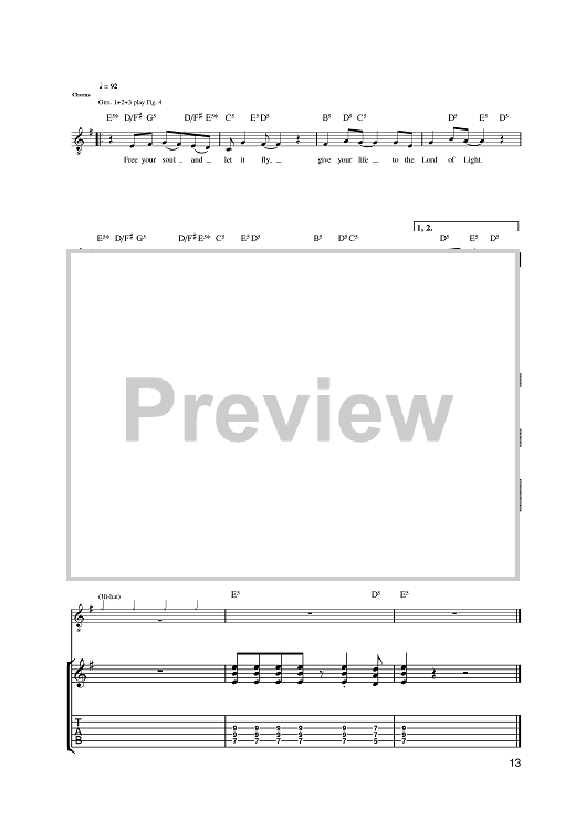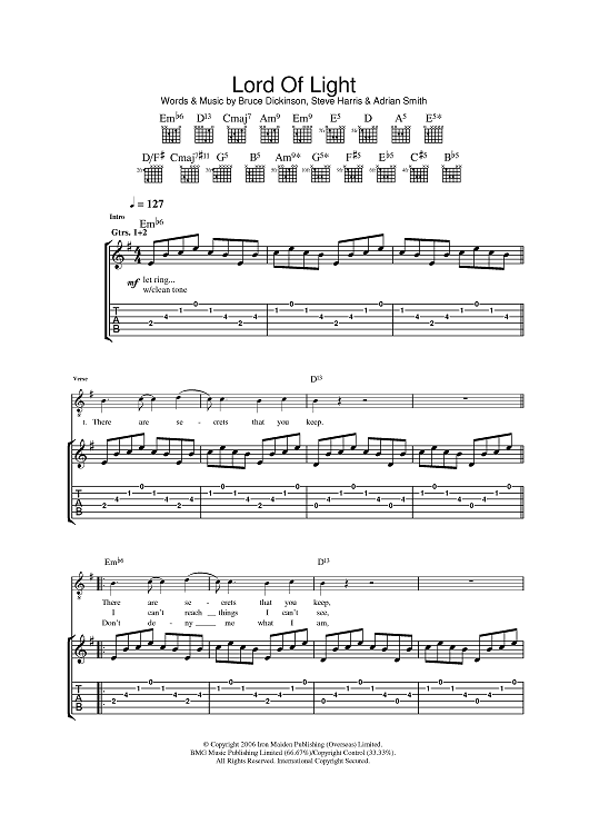 Digital Sheet Music for Lord Of Light by Steve Harris, Bruce Dickinson, Adrian Smith, Iron Maiden scored for Guitar Tab; id:395580