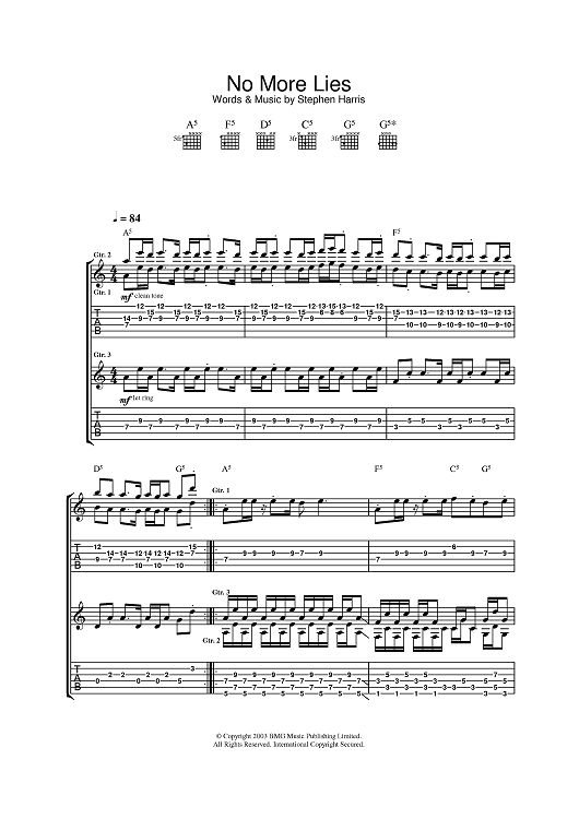 Digital Sheet Music for No More Lies by Iron Maiden scored for Guitar Tab; id:378316