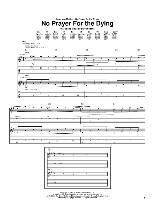 Digital Sheet Music for No Prayer For The Dying by Steve Harris, Iron Maiden scored for Guitar Tab; id:391018
