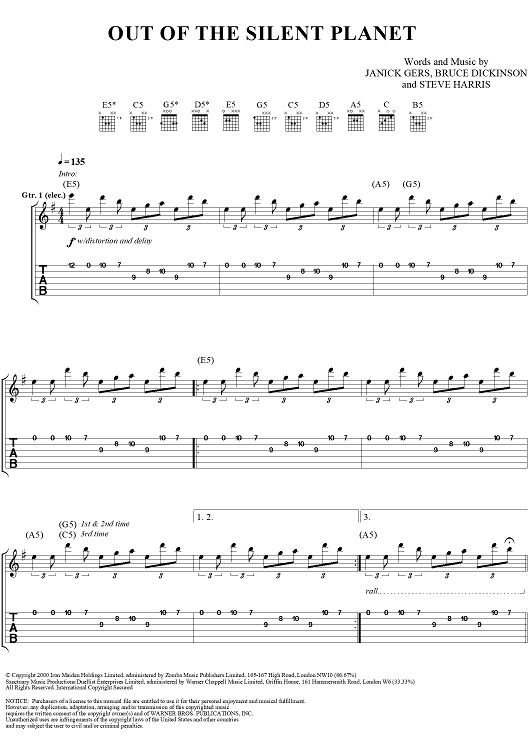 "Out of the Silent Planet" Sheet Music by Iron Maiden