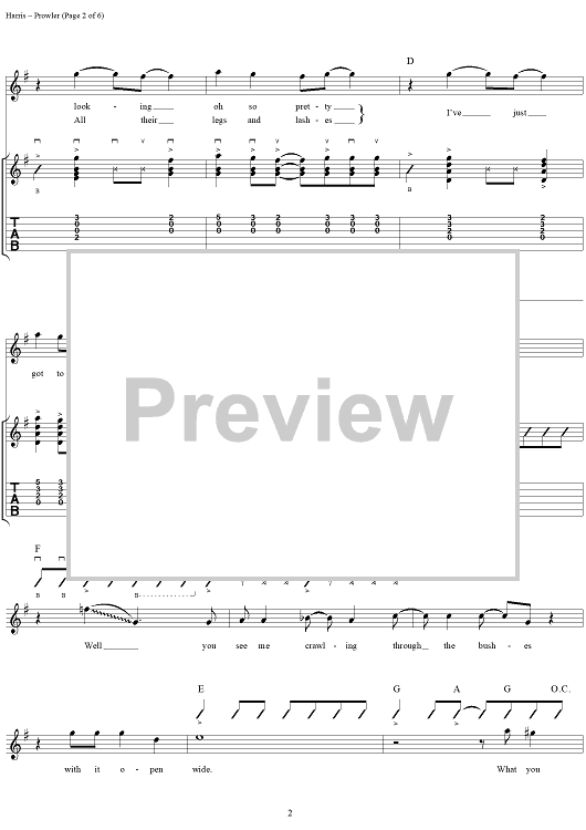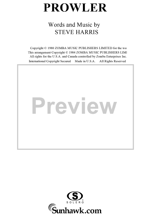 Digital Sheet Music for Prowler by Steve Harris, Iron Maiden scored for Guitar Tab/Vocal; id:112996