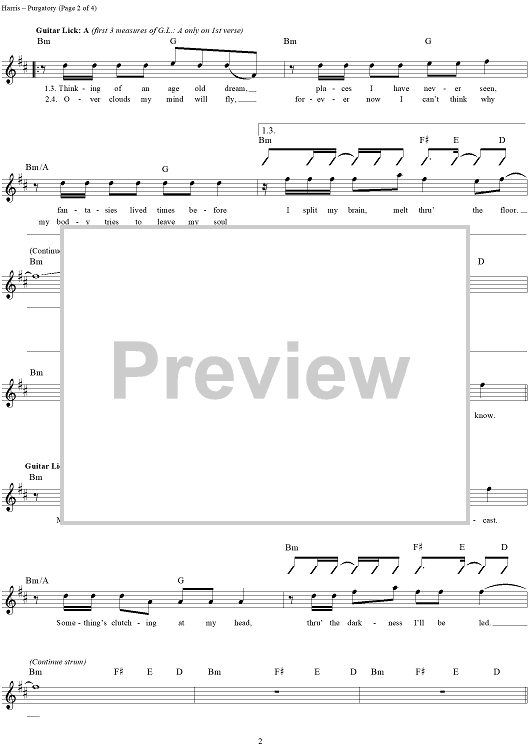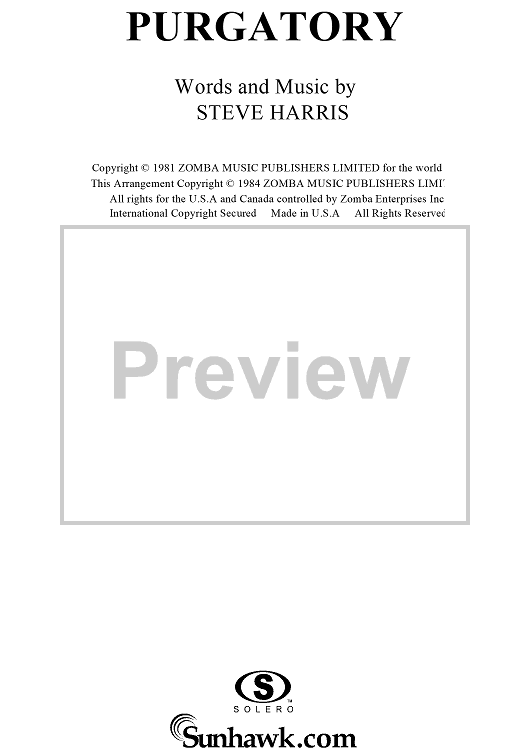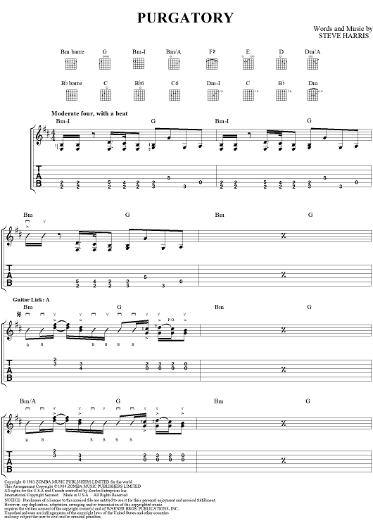 Digital Sheet Music for Purgatory by Steve Harris, Iron Maiden scored for Guitar Tab/Vocal; id:112084