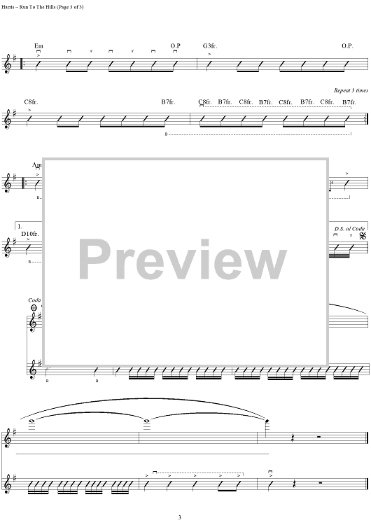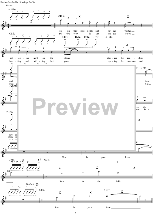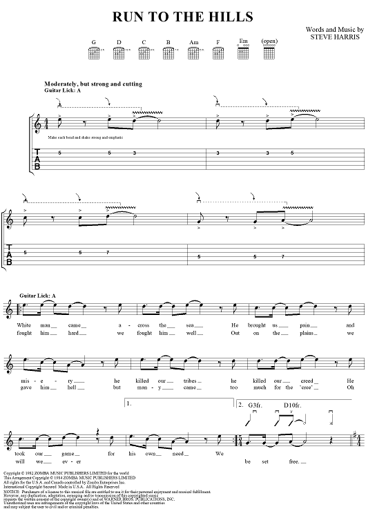 Digital Sheet Music for Run to the Hills by Steve Harris, Iron Maiden scored for Guitar Tab/Vocal; id:112999