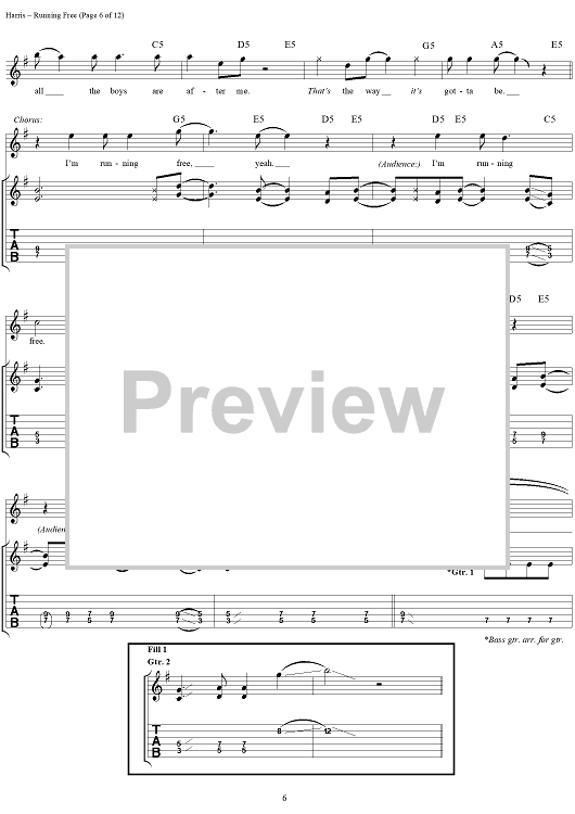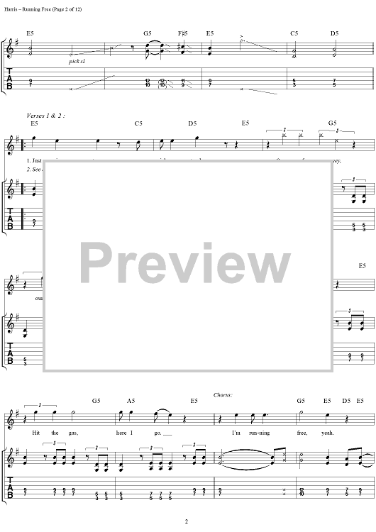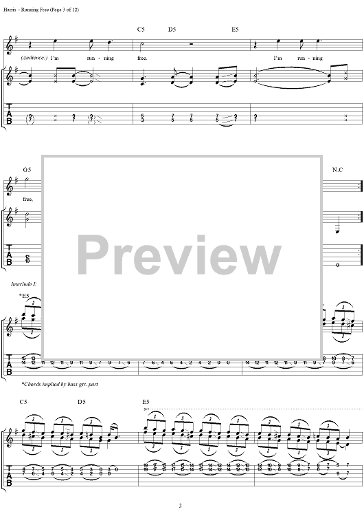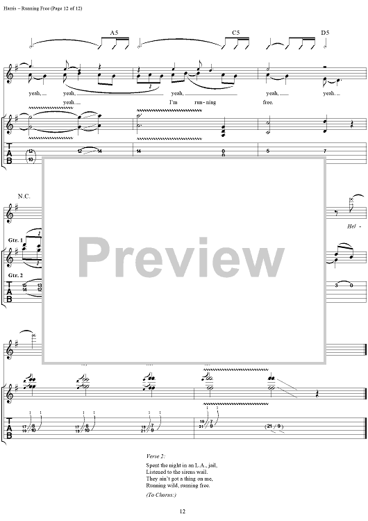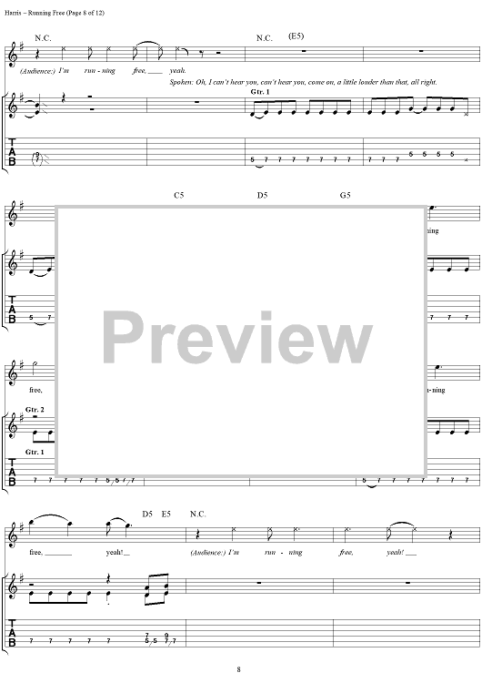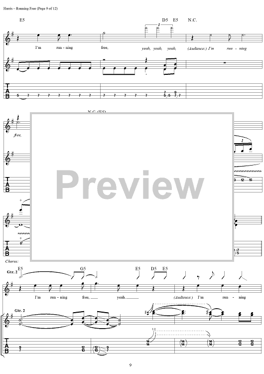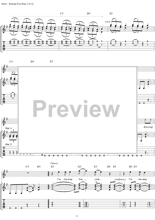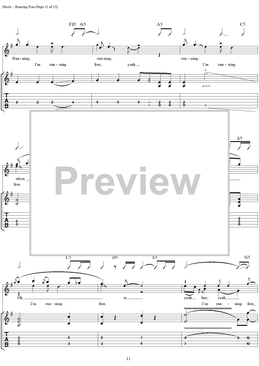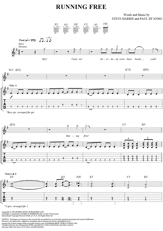 Digital Sheet Music for Running Free by Steve Harris, Paul Di'anno, Iron Maiden scored for Guitar Tab/Vocal; id:267320