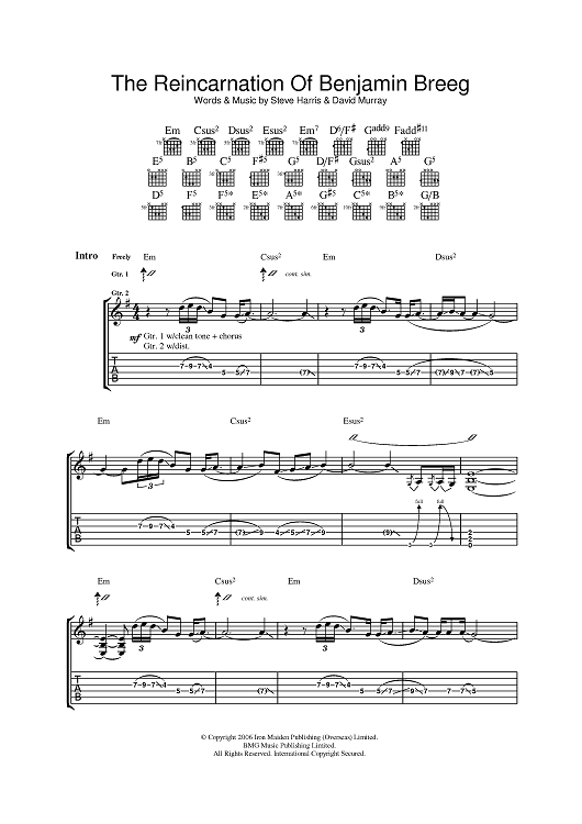 Digital Sheet Music for The Reincarnation Of Benjamin Breeg by Steve Harris, Iron Maiden, Dave Murray scored for Guitar Tab; id:395578
