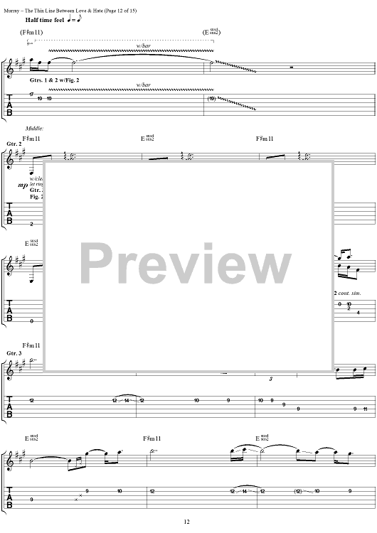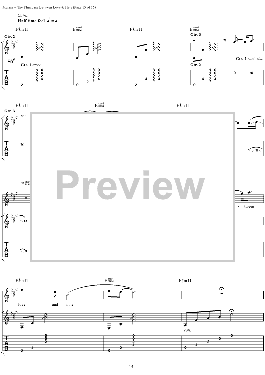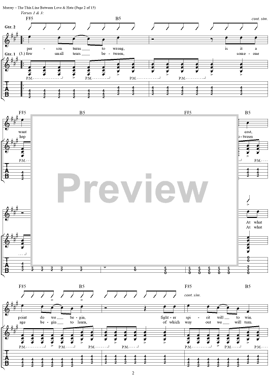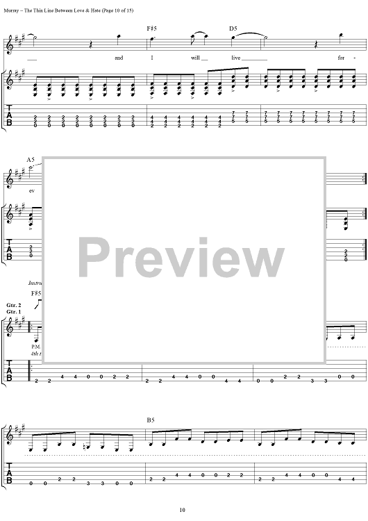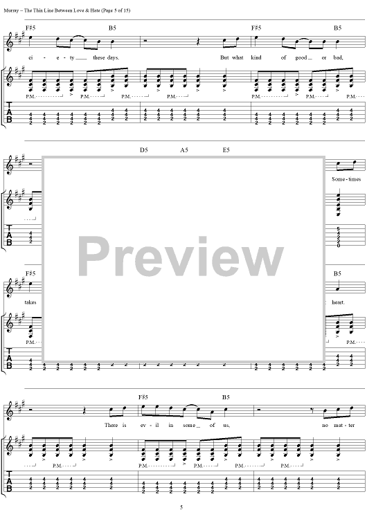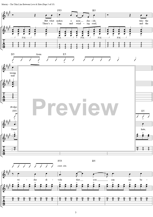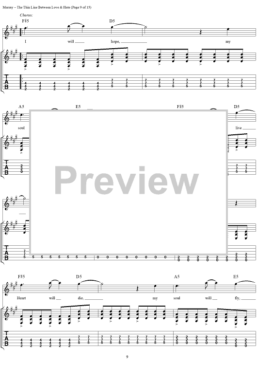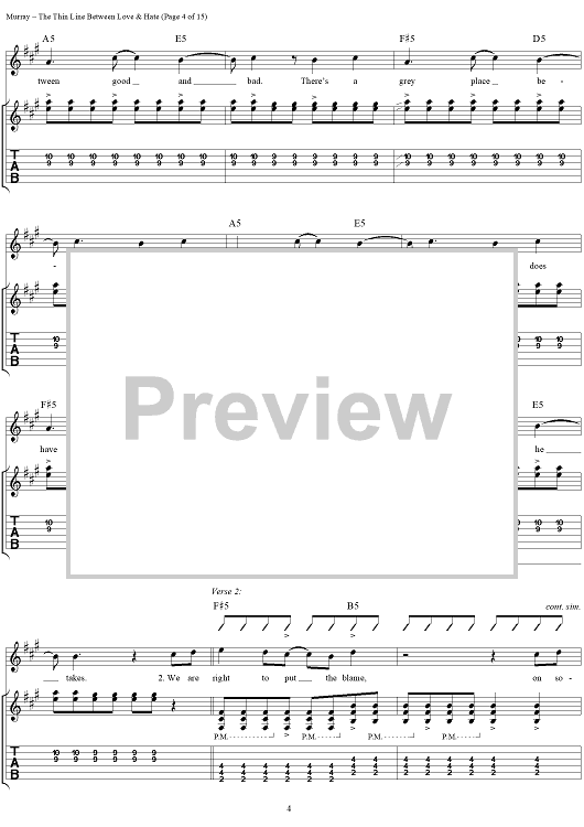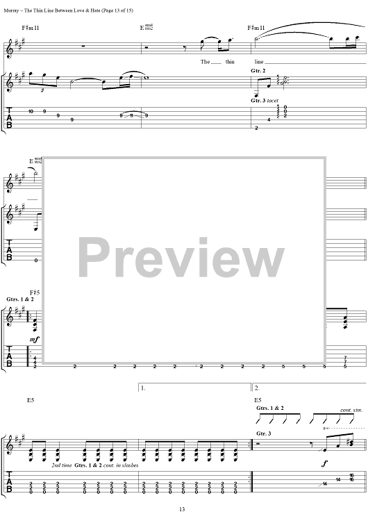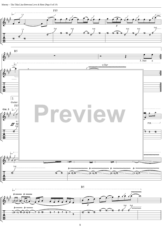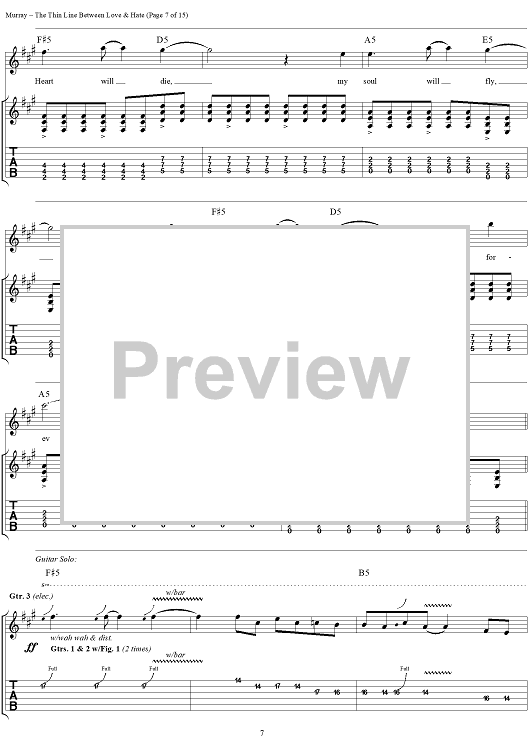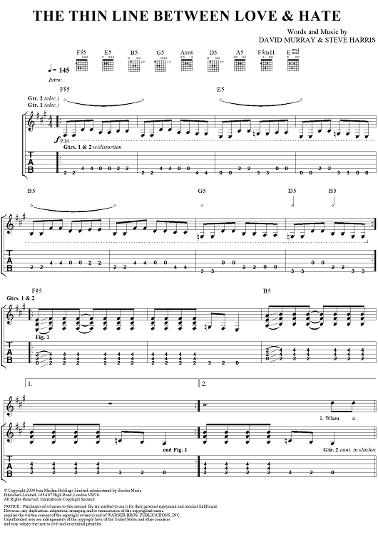 Digital Sheet Music for The Thin Line Between Love & Hate by Steve Harris, Iron Maiden, Dave Murray scored for Guitar Tab/Vocal; id:284112