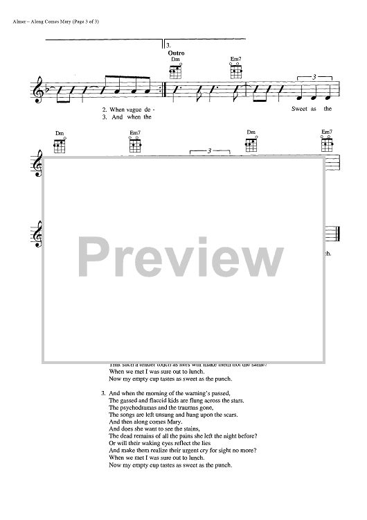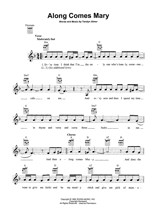 Digital Sheet Music for Along Comes Mary by Tandyn Almer, The Association scored for Ukulele/Vocal; id:448979