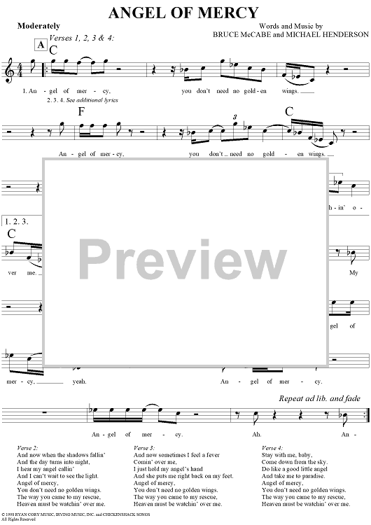 Digital Sheet Music for Angel of Mercy by Michael Henderson, Jonny Lang, Bruce McCabe scored for Lead Sheet; id:290777