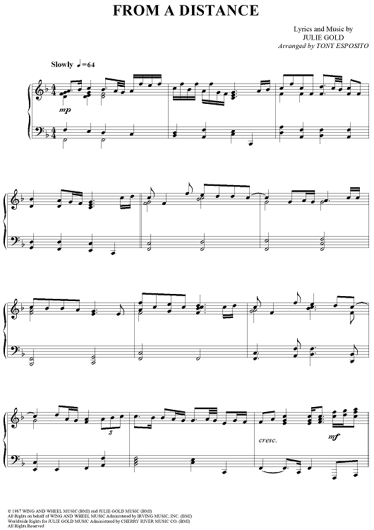 Digital Sheet Music for From a Distance by Julie Gold, Tony Esposito scored for Piano Solo; id:292986