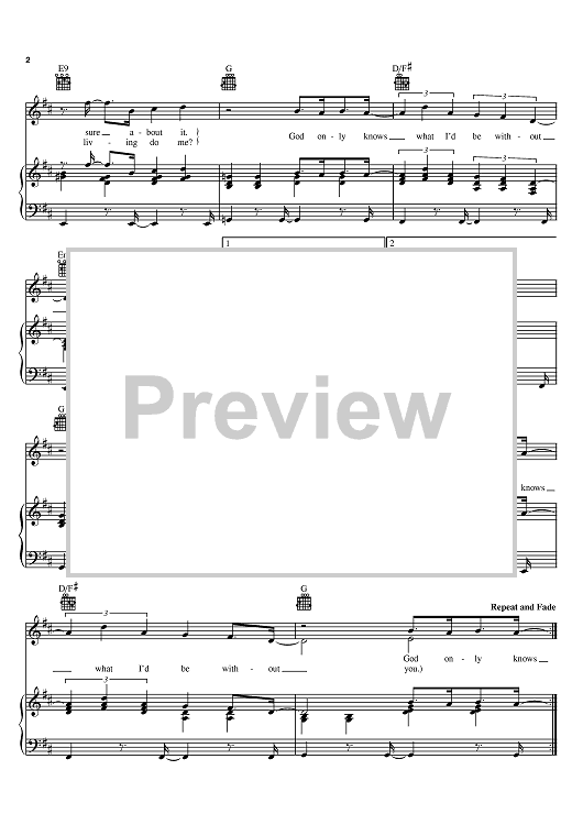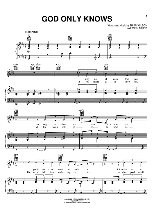 Digital Sheet Music for God Only Knows by Brian Wilson, The Beach Boys, Tony Asher scored for Piano/Vocal/Chords; id:367389
