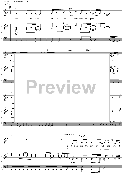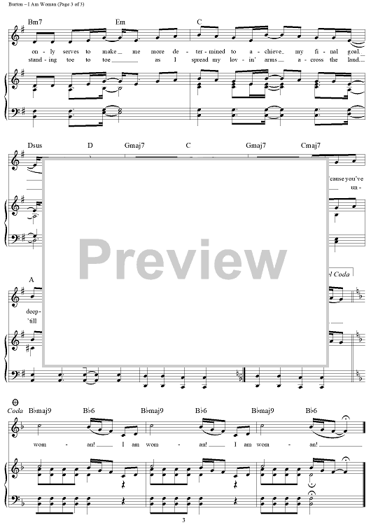 Digital Sheet Music for I Am Woman by Ray Burton, Helen Reddy scored for Piano/Vocal/Chords; id:116264