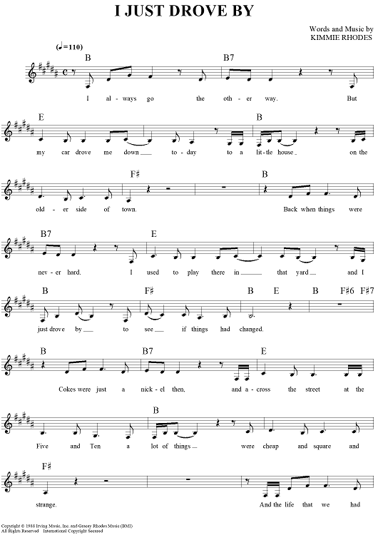 Digital Sheet Music for I Just Drove By by Kimmie Rhodes, Wynonna Judd scored for Lead Sheet; id:454396
