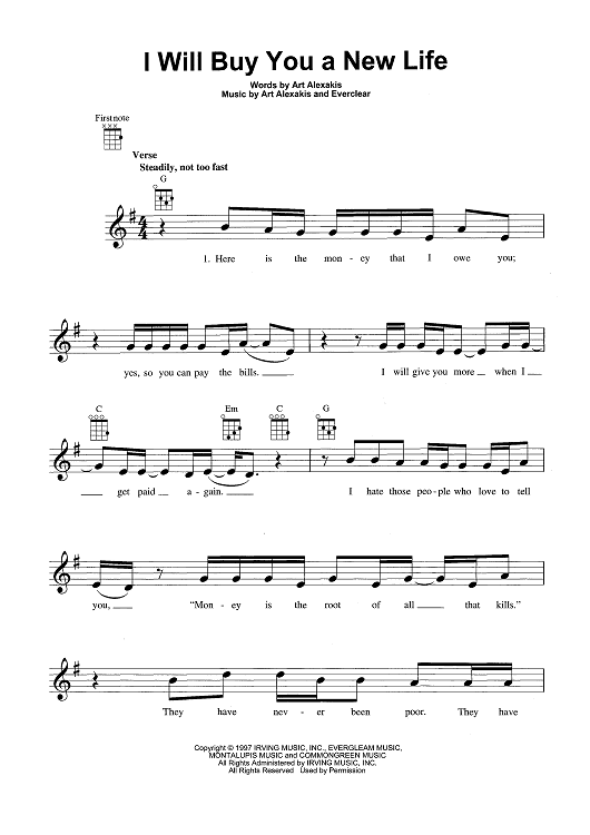 Digital Sheet Music for I Will Buy You A New Life by Everclear, Art Alexakis scored for Ukulele/Vocal; id:465473