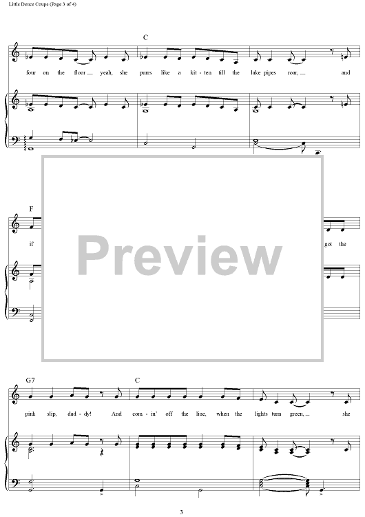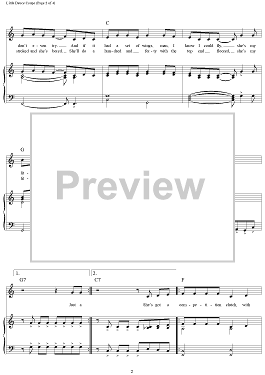 Digital Sheet Music for Little Deuce Coupe by Brian Wilson, The Beach Boys, Hot Dog Rog scored for Piano/Vocal/Chords; id:220548
