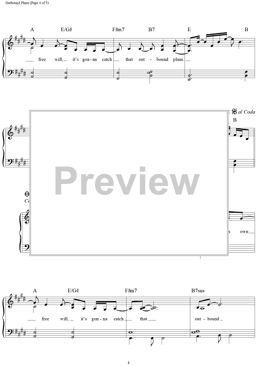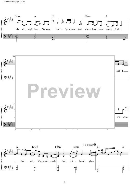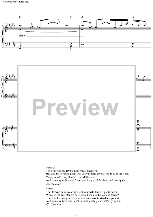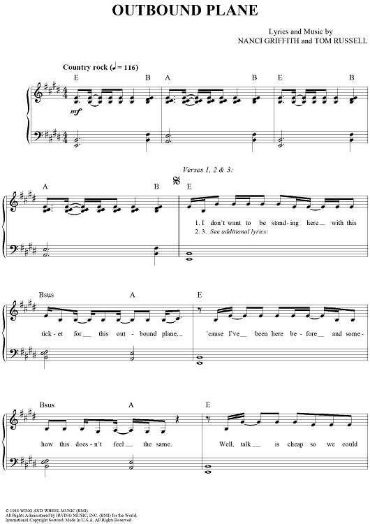 Digital Sheet Music for Outbound Plane by Nanci Griffith, Tom Russell scored for Piano/Vocal/Chords; id:201431