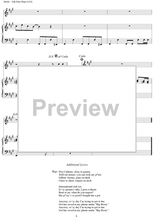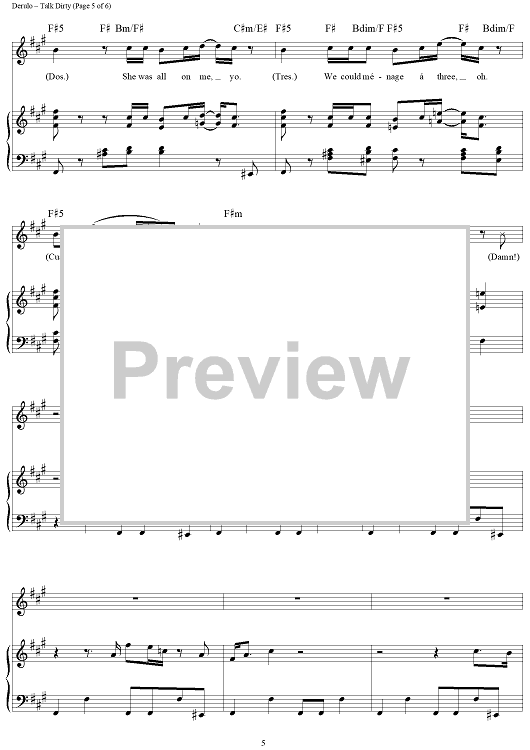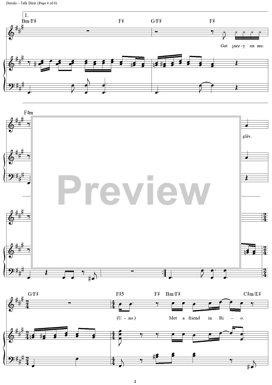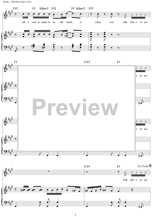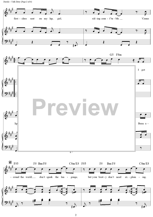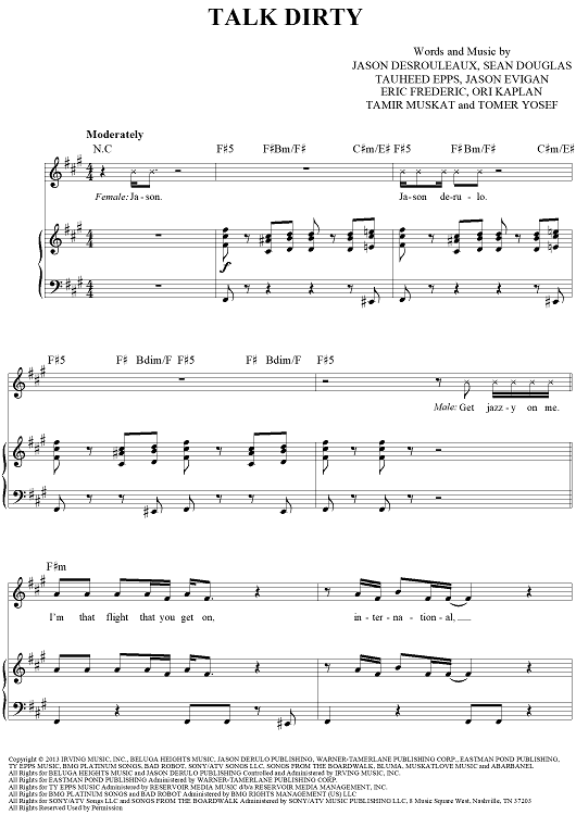 Digital Sheet Music for Talk Dirty by Jason Derulo, Sean Douglas, Jason Evigan, Tauheed Epps, Eric Frederic, Ori Kaplan, Tamir Muskat, Tomer Yosef scored for Piano/Vocal/Chords; id:441857