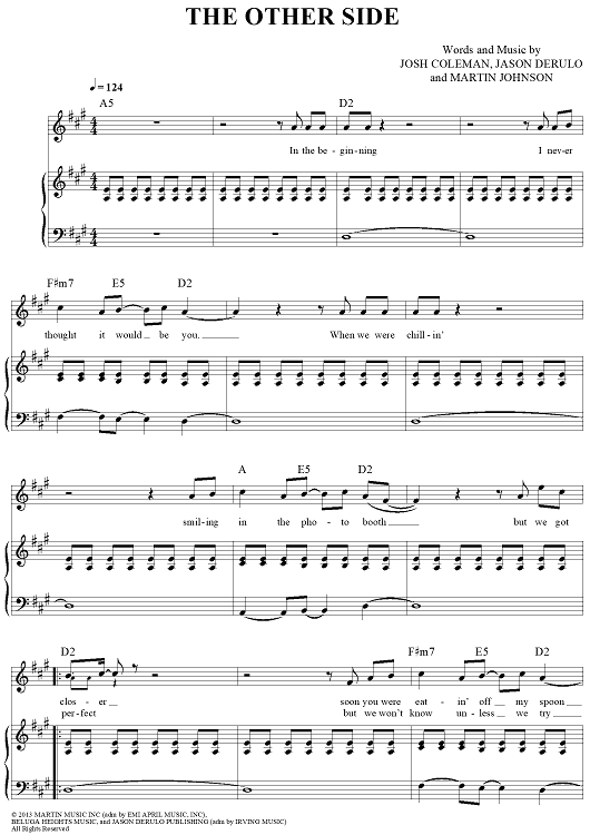 Digital Sheet Music for The Other Side by Martin Johnson, Jason Derulo, Ammo scored for Piano/Vocal/Chords; id:437226