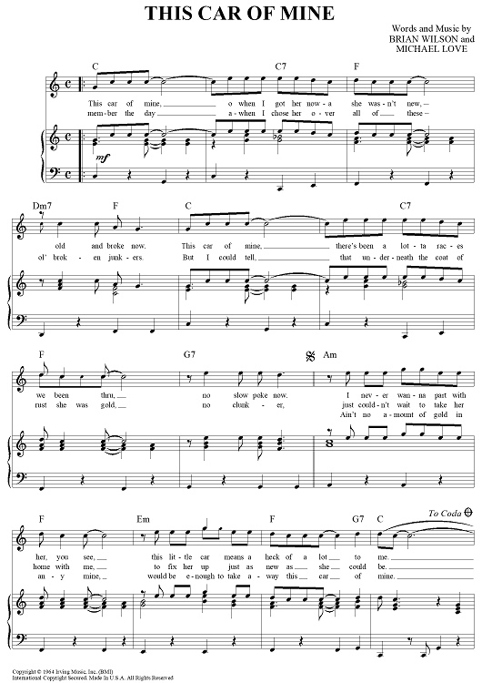 Digital Sheet Music for This Car of Mine by Brian Wilson, The Beach Boys scored for Piano/Vocal/Chords; id:220544
