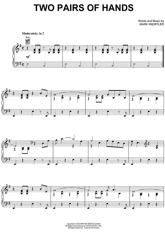"Two Pairs of Hands" Sheet Music by Mark Knopfler