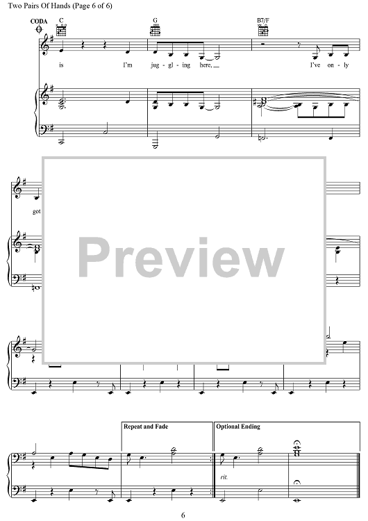 Digital Sheet Music for Two Pairs of Hands by Mark Knopfler scored for Piano/Vocal/Chords; id:503953