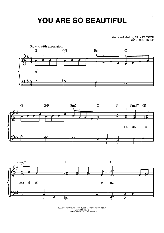 Digital Sheet Music for You Are So Beautiful by Joe Cocker, Billy Preston, Bruce Fisher scored for Easy Piano; id:367422
