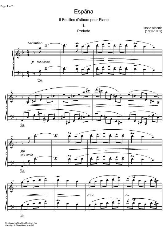 "Espãna 1 Prelude" Sheet Music by Isaac Albéniz