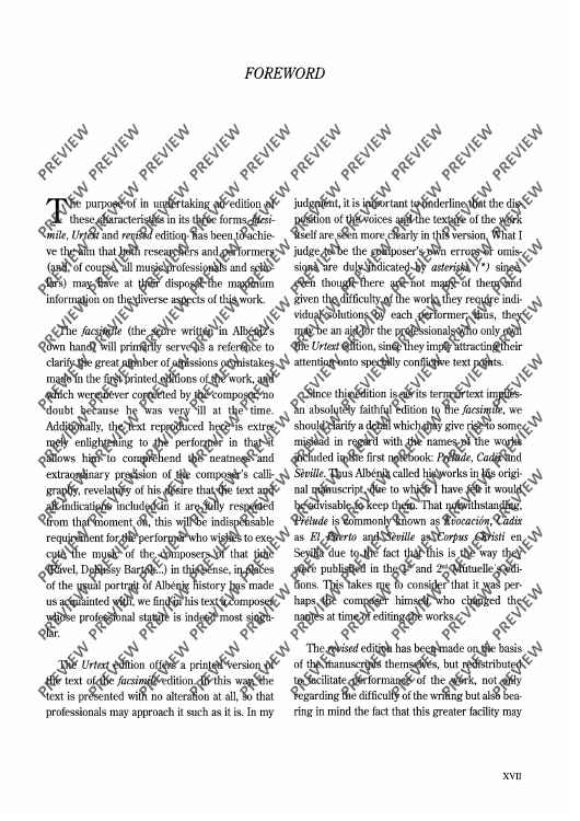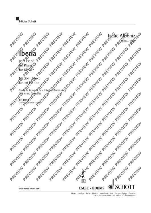 The Iberia Suite, the most important work of Spanish 20th century music, was composed from 1905-1908. Facsimile Edition ED 8995. Urtext Edition ED 8994.