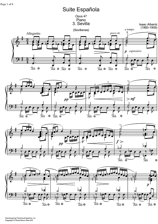 Digital Sheet Music for Suite Española 3 Sevilla by Isaac Albéniz scored for Piano Solo; id:322545