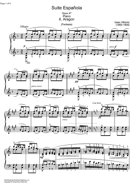 Digital Sheet Music for Suite Española 6 Aragon by Isaac Albéniz scored for Piano Solo; id:322538