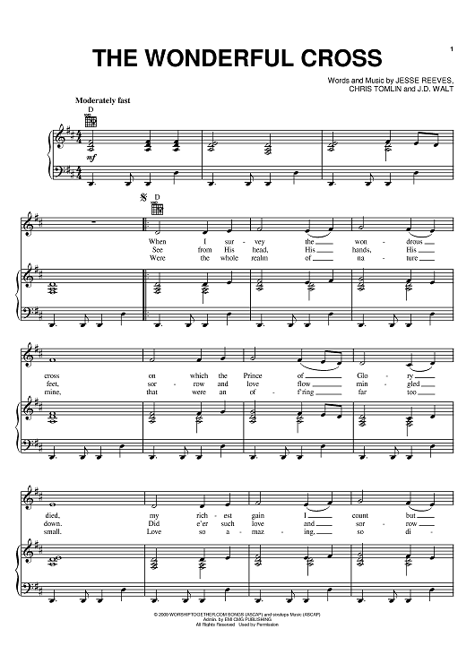 Digital Sheet Music for The Wonderful Cross by Michael W. Smith, Chris Tomlin, Jesse Reeves, J. D. Walt, Phillips, Craig and Dean scored for Piano/Vocal/Chords; id:373677